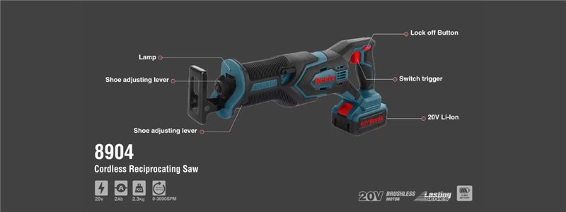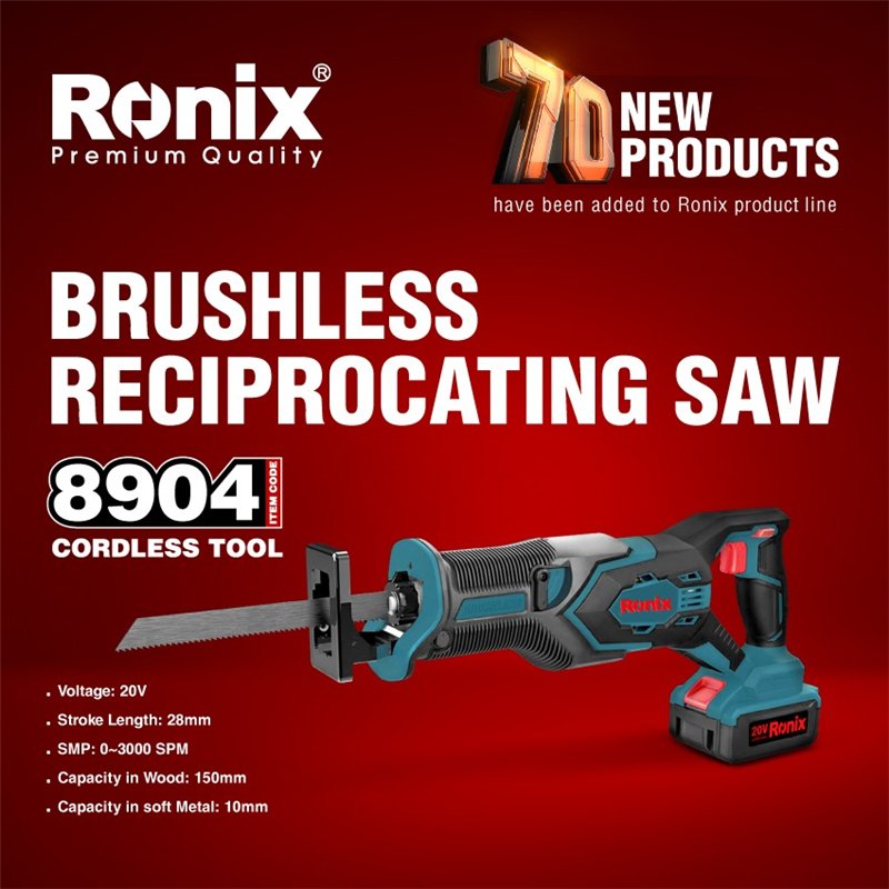Аккумуляторная сабельная пила Ronix 8904, 20V, бесщеточная, портативная, для обрезки веток (арт. 25-18031224)