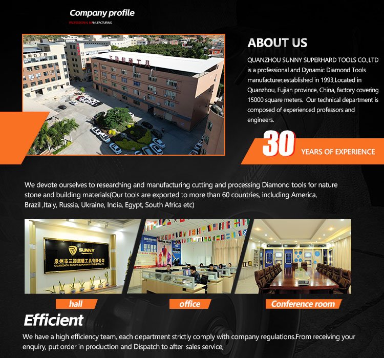 Sunny Superhard Tools специализируется на производстве высококачественного алмазного инструмента для строительства и обработки камня. Наш алмазный инструмент включает в себя инструменты для резки камня, алмазные шлифовальные инструменты и инструменты для алмазного сверления.