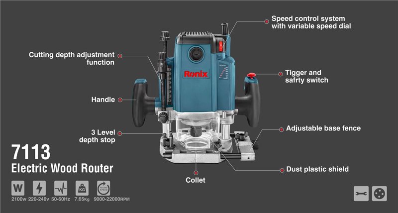 Электрический фрезер Ronix 7113, 2100 Вт, высокое качество, ручной инструмент для обработки древесины (арт. 25-18031151)