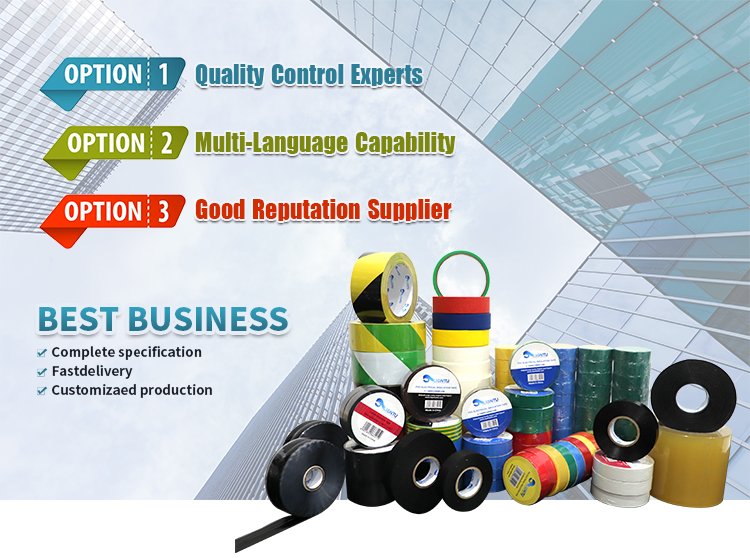Наша основная продукция — тканевая (тканевая) изоляционная лента, ПВХ-изоляционная лента, силиконовая резиновая самоплавкая лента, ПВХ-лента для обмотки труб, упаковочная уплотнительная лента Bopp, маскирующая лента и так далее. Также принимаем заказы OEM, изготавливаем наклейки с брендом клиента, упаковываем и доставляем по мере необходимости.