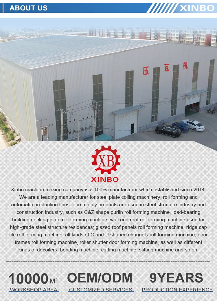 Xinbo Machine — компания, специализирующаяся на проектировании и производстве оборудования для холодной формовки металлопроката. Предприятие располагает собственным инженерным отделом, производственной линией и современными станками ЧПУ, что позволяет выпускать оборудование с точными параметрами и стабильной геометрией профиля. Xinbo предлагает как стандартные модели линий, так и разработку решений под индивидуальные требования. Перед отправкой каждая установка проходит тестирование и проверку качества. Компания ориентирована на долгосрочное сотрудничество и поставки на международные рынки.