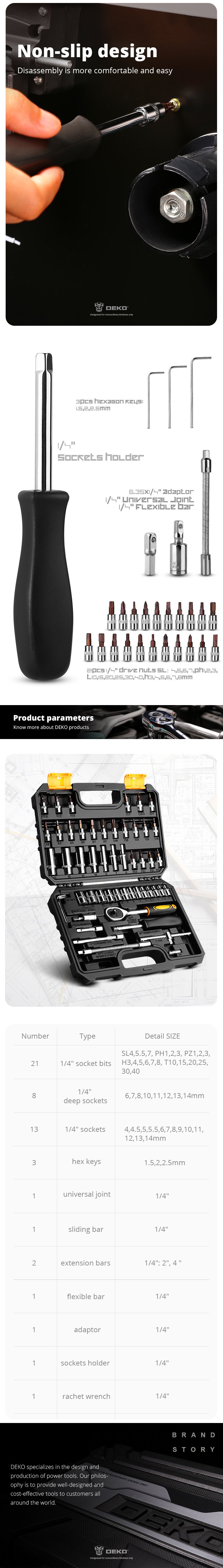 DEKO Tools — международная компания электро- и ручного инструмента, основанная в 2013 году. Производственная база расположена в Нинбо, Китай. Компания ориентирована на массовый DIY-сегмент и предлагает широкий ассортимент инструмента в доступном ценовом диапазоне.