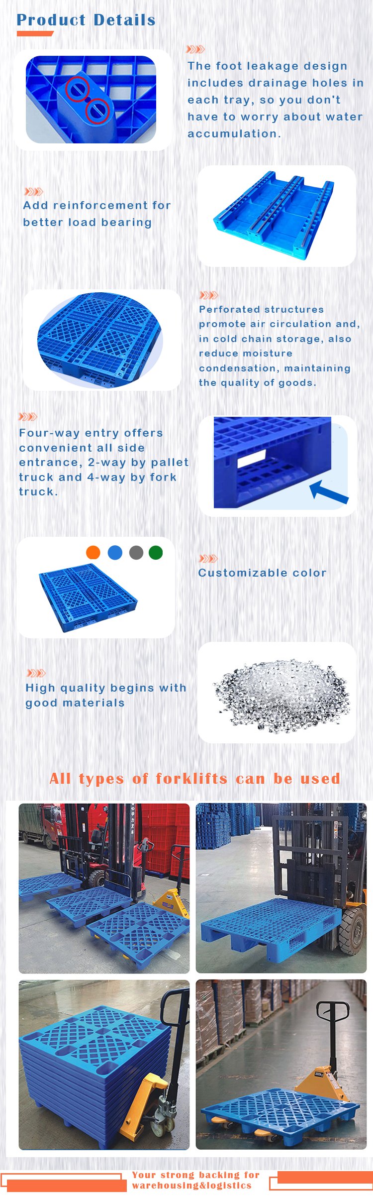 Qingdao Huading Industry. Co., Ltd. является ведущим поставщиком пластиковых логистических изделий из Китая. Мы основаны в 2006 году, а наш завод был запущен в 1980-х годах. Мы предлагаем не только продукцию высочайшего качества, но и профессиональные решения в области логистики и хранения.