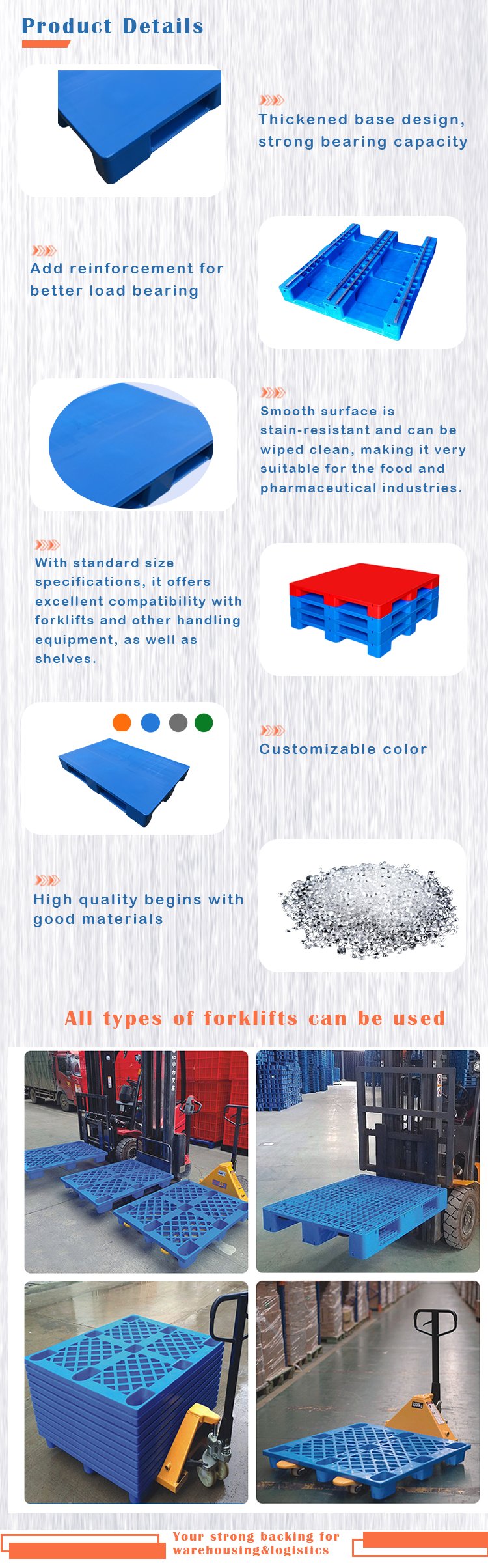 Qingdao Huading Industry. Co., Ltd. является ведущим поставщиком пластиковых логистических изделий из Китая. Мы основаны в 2006 году, а наш завод был запущен в 1980-х годах. Мы предлагаем не только продукцию высочайшего качества, но и профессиональные решения в области логистики и хранения.