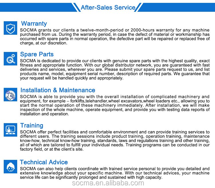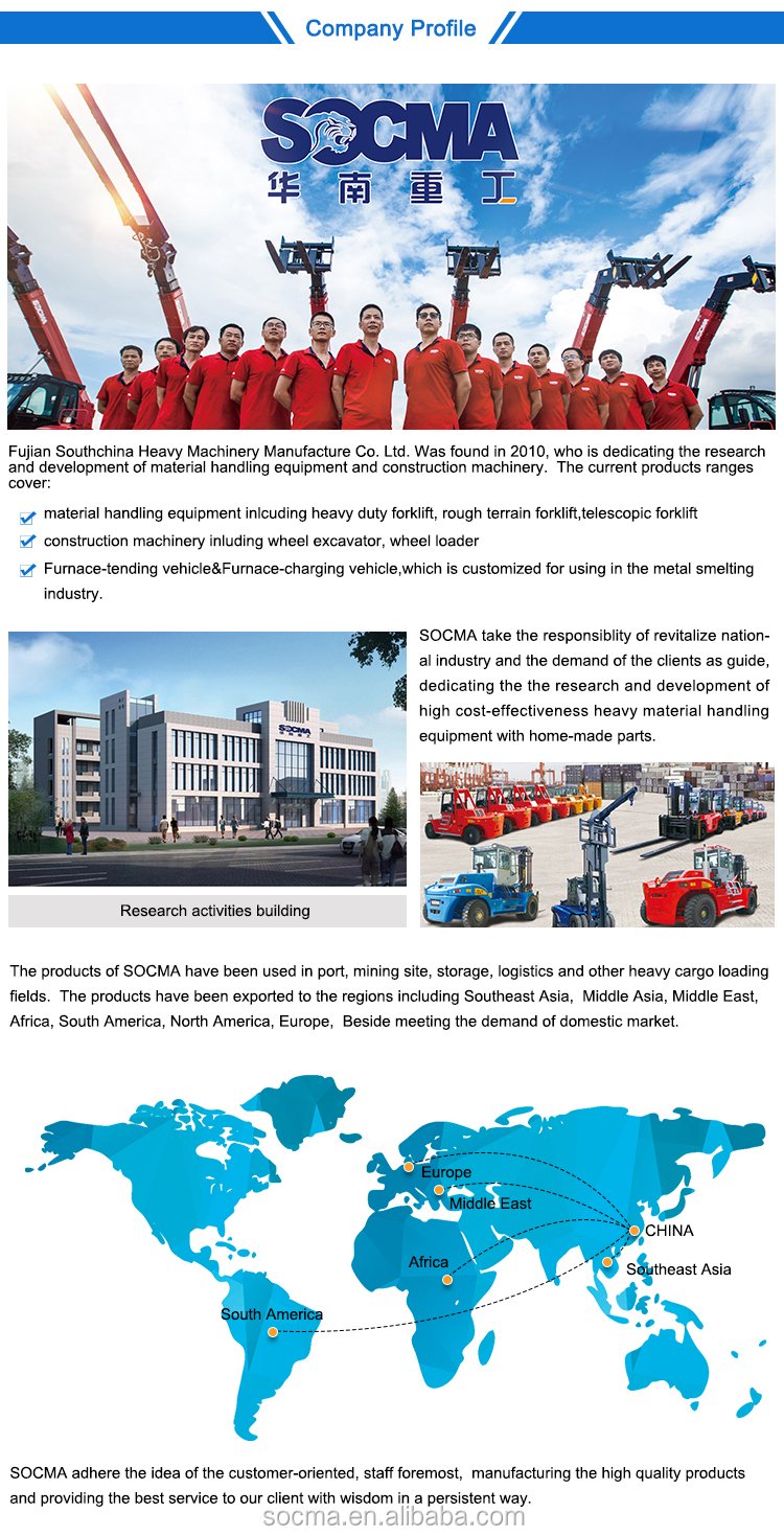Основанная в 2010 году в Цюаньчжоу, провинция Фуцзянь, компания SOCMA является ведущим высокотехнологичным предприятием. Мы специализируемся на разработке, производстве, продаже и обслуживании широкого спектра техники, включая тяжелые и внедорожные вилочные погрузчики, телескопические погрузчики, портовую технику и электрическое оборудование, такое как вилочные погрузчики, экскаваторы и телескопические стрелы. Признанная за свои инновации и превосходство в провинции Фуцзянь, мы являемся ключевым игроком в сфере экспорта профессионального оборудования, стремимся к качеству и совершенствованию решений в области логистики и строительной техники.