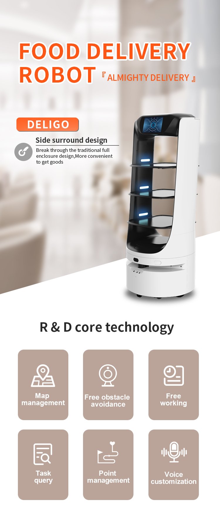 Мы всегда ориентируемся на исследования и разработки, а также на инновации, и за годы технического прогресса мы полностью освоили основные технологии роботов. В настоящее время Reeman успешно выпускает серию роботизированных продуктов, таких как роботы для коммерческого обслуживания, роботы-доставщики, роботы для дезинфекции и шасси роботов. Являясь технологическим пионером и лидером нового поколения интеллектуальных роботов в Китае. Reeman всегда придерживается принципа ориентированности на пользователя и продолжает завоевывать расположение пользователей по всему миру благодаря высокому стандарту, высокой производительности и экономичности. и постоянно разрабатываем надежных коммерческих роботов для повышения эффективности и уровня обслуживания клиентов.