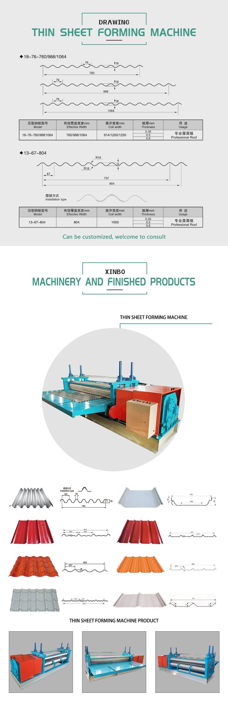 Xinbo Machine — компания, специализирующаяся на проектировании и производстве оборудования для холодной формовки металлопроката. Предприятие располагает собственным инженерным отделом, производственной линией и современными станками ЧПУ, что позволяет выпускать оборудование с точными параметрами и стабильной геометрией профиля. Xinbo предлагает как стандартные модели линий, так и разработку решений под индивидуальные требования. Перед отправкой каждая установка проходит тестирование и проверку качества. Компания ориентирована на долгосрочное сотрудничество и поставки на международные рынки.