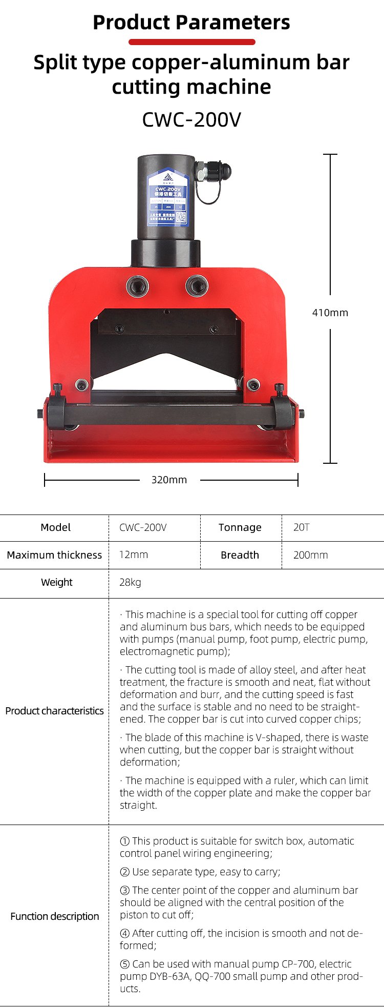 Компания в основном производит все виды гидравлического инструмента, включая трубопроводный инструмент, подъемный инструмент, болторезный инструмент, электроинструмент для строительства, режущий инструмент, волочильный инструмент, инструменты для обработки шин, насосы и т.д., Инструменты для удовлетворения потребностей электростанций, нефтехимических предприятий, горнодобывающей промышленности и судостроения, мостостроения.