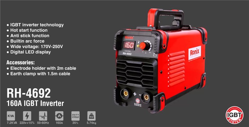 Сварочный аппарат Ronix RH-4692, 160A, дуговая сварка, 220V, для непрерывной работы (арт. 25-18031208)