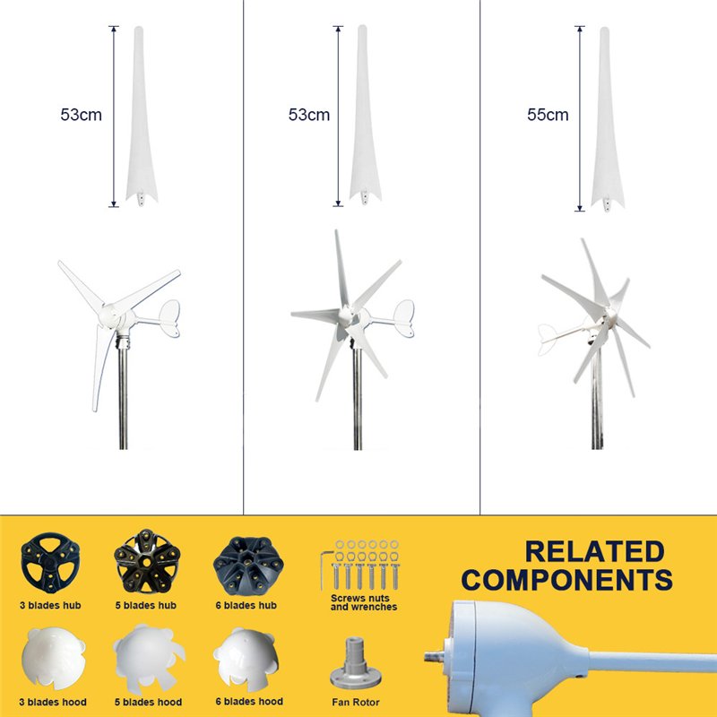 Ветрогенератор бытовой 5 лопастей MPPT контроллер 500-1000W (арт. 25-5081100)