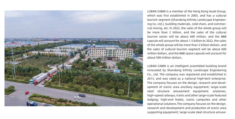 Компания Shandong Endless Landscape Technology Co., Ltd. (основана в 2013 г.) с производственной базой в провинции Шаньдун, Китай. Специализируется на разработке и серийном производстве модульных дом-капсул, сборных контейнерных и префаб-структур для сферы культурного-туристического отдыха, кемпингов, гостиничного сегмента и коммерческого использования.