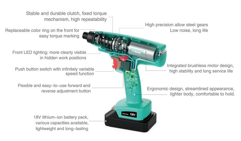 Аккумуляторная отвёртка 1/4, бесщеточная, 18В, с муфтой, промышленный инструмент (25-20051615)