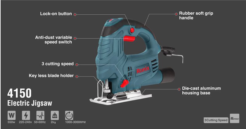 Электрический лобзик Ronix 4150, 550 Вт, 3000 об/мин, (65-8 мм), высокая точность (арт. 25-18031110)