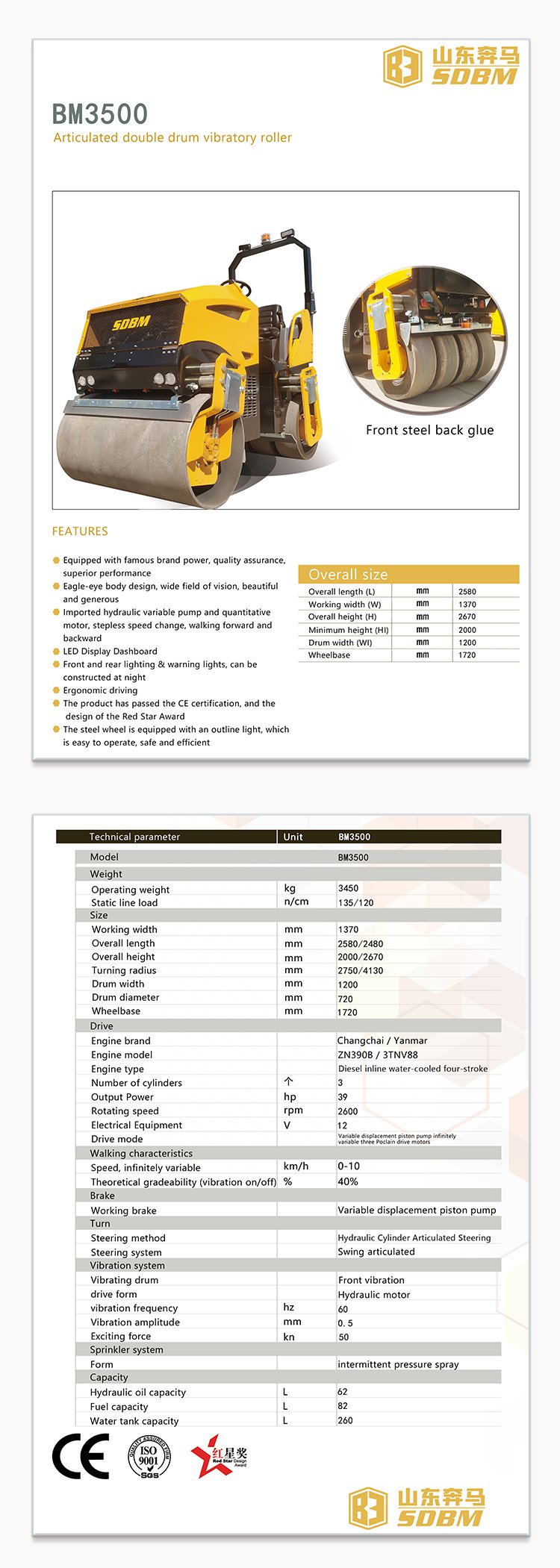 Shandong Benma Engineering Machinery Co., Ltd. является ведущим игроком в области машиностроения. С момента своего основания в 2002 году мы получили сертификат системы качества ISO9001, что подчеркивает нашу приверженность производству высококачественной продукции. Наш обширный ассортимент продукции включает дорожные катки, передвижные осветительные вышки, гидравлические силовые установки, машины для уплотнения, бетоноукладчики и строительную технику.