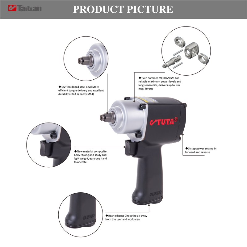 Мини пневматический гайковёрт 3/8, 470Нм, двухмолотковый, профессиональный (25-20051544)