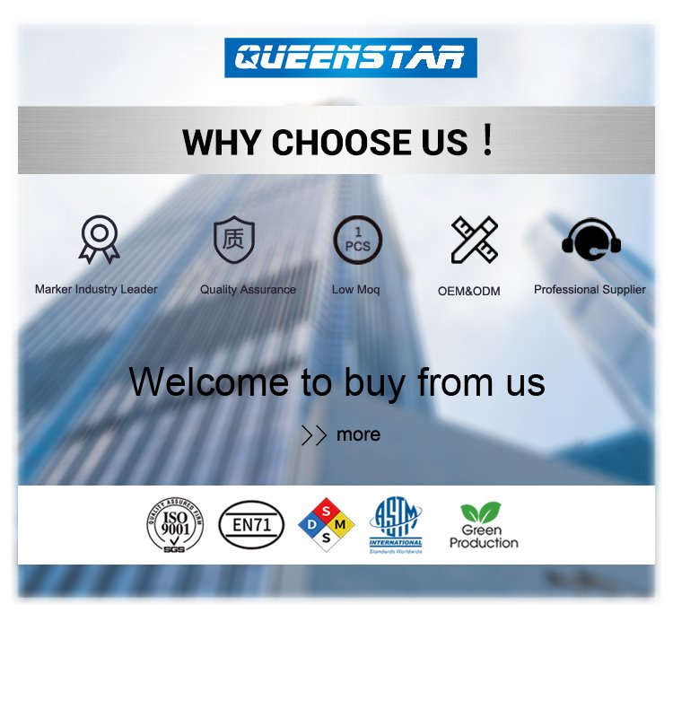 Компания Lishui Queenstar Stationery Manufacturing была основана в 2013 году. Как профессиональный производитель фломастеров, мы специализируемся на производстве ручек для белой доски, перманентных маркеров, акварельных ручек и фломастеров для рисования. Наша компания расположена в городе Лишуй, Чжэцзян, и имеет удобный транспортный доступ. Наша продукция получила более 13 патентных свидетельств и хорошо продается как внутри страны, так и за рубежом. Мы гордимся тем, что предоставляем эксклюзивные продукты высочайшего качества, отличный сервис, своевременную доставку и послепродажную поддержку. Ассортимент нашей продукции значительно расширяется, и мы прилагаем все усилия для укрепления нашего бренда.