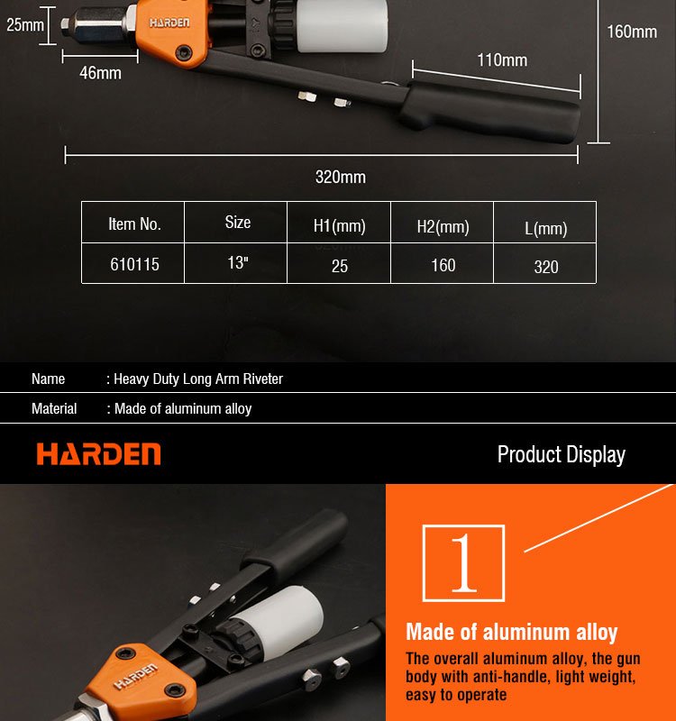 Shanghai Harden Tools Co., Ltd. - ведущая компания, специализирующаяся на производстве, разработке, продаже и сервисном обслуживании аппаратных средств и нацеленная на предоставление аппаратных средств промышленного уровня с высоким соотношением цены и качества. После многих лет развития у нас появились деловые партнеры в более чем 50 странах, с офисами исследований и разработок и продаж в Германии и т.д. В настоящее время бренд “HARDEN” стал основным выбором для клиентов в стране и за рубежом, став их надежными партнерами.