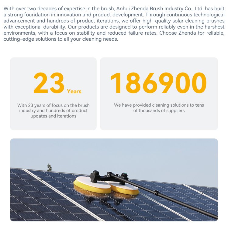 Продукция экспортируется по всему миру, в основном это промышленные щеточные валики, щетки для подметания дорог, щетки для уборки снега, щетки для мытья полов, полосовые щетки, щетки для крупного рогатого скота, щетки для полировки, щетки для автомойки и так далее. Компания Anhui Zhenda Brush Industry Co., Ltd. располагает научно-исследовательской группой с глубокой теоретической базой, высокой технической грамотностью и мощным потенциалом в области научных разработок. Основное внимание компании уделяется исследованиям физических и химических свойств материалов, а также инновациям и оптимизации процесса их получения.