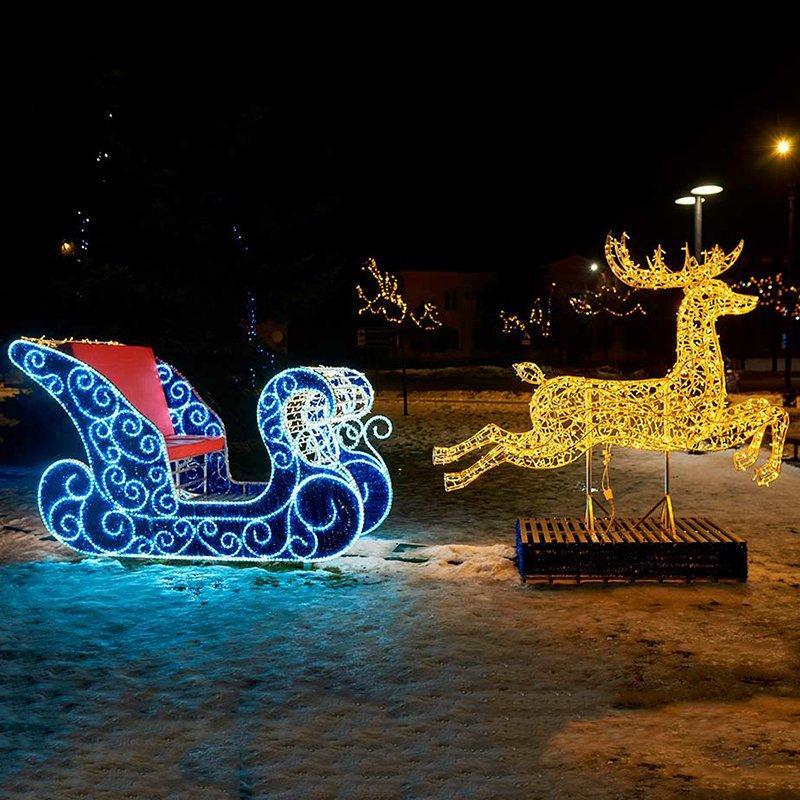 Светящийся олень и санта сани для улицы, мотивные огни (арт. 26-1090408)