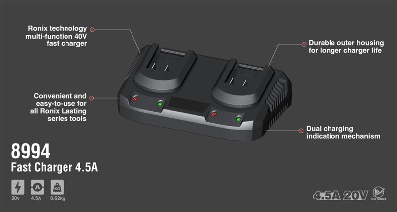 Зарядное устройство для аккумуляторов Ronix, 18650 Li-ion, 10.8V-20V, 2A (арт. 25-18031238)